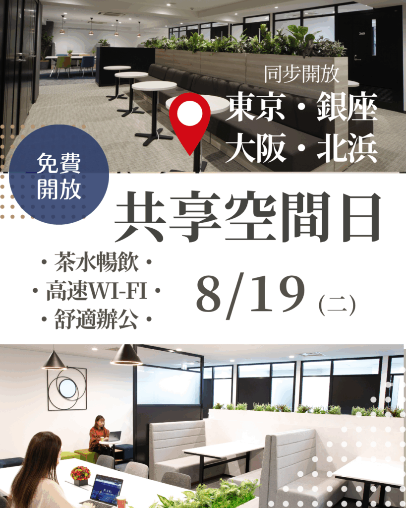 8月限定!東京、大阪首度同步開放共享空間免費體驗日!